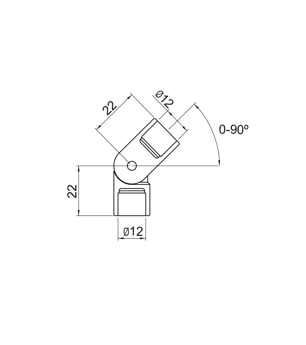 Ref.13026.06: Codo de acero inoxidable regulable acabado BRILLO para tubo de 12 mm de diámetro.