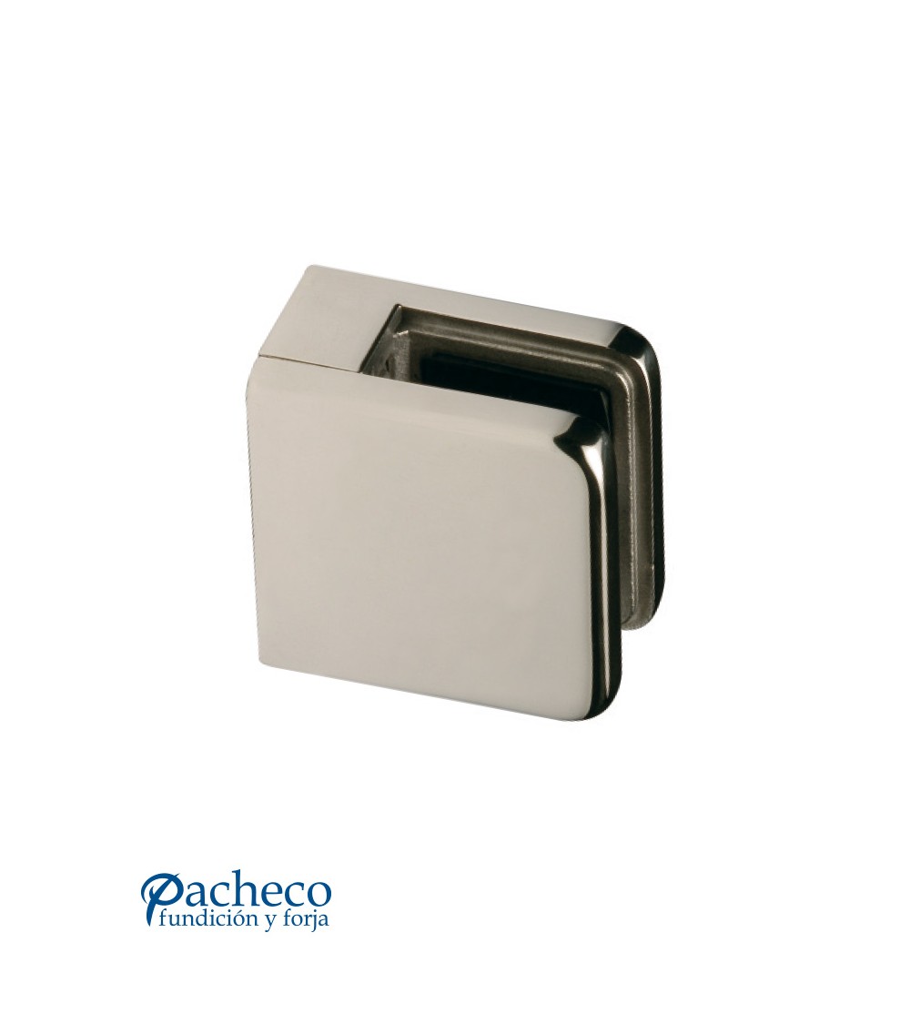 · Pinza redondeada para sujeción de cristal o vidrio en acero inoxidable 316 brillo.
