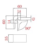 Pinza rectangular a 90º para sujeción de cristal o vidrio en acero inoxidable 316 brillo para colocar barandillas o pasamanos con referencia 13112.25 y referencia 13112.27: