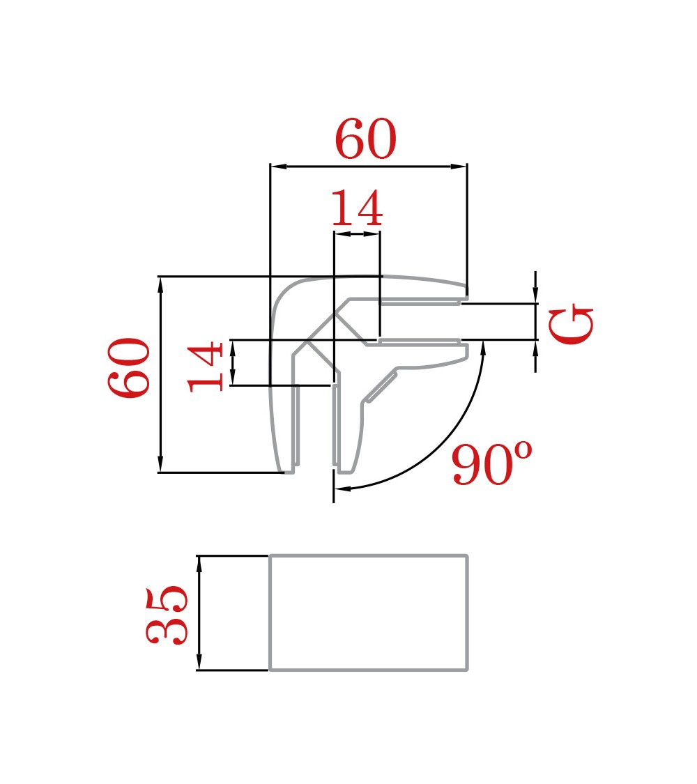 · Pinza rectangular a 90º para sujeción de cristal o vidrio en acero inoxidable 316 brillo.