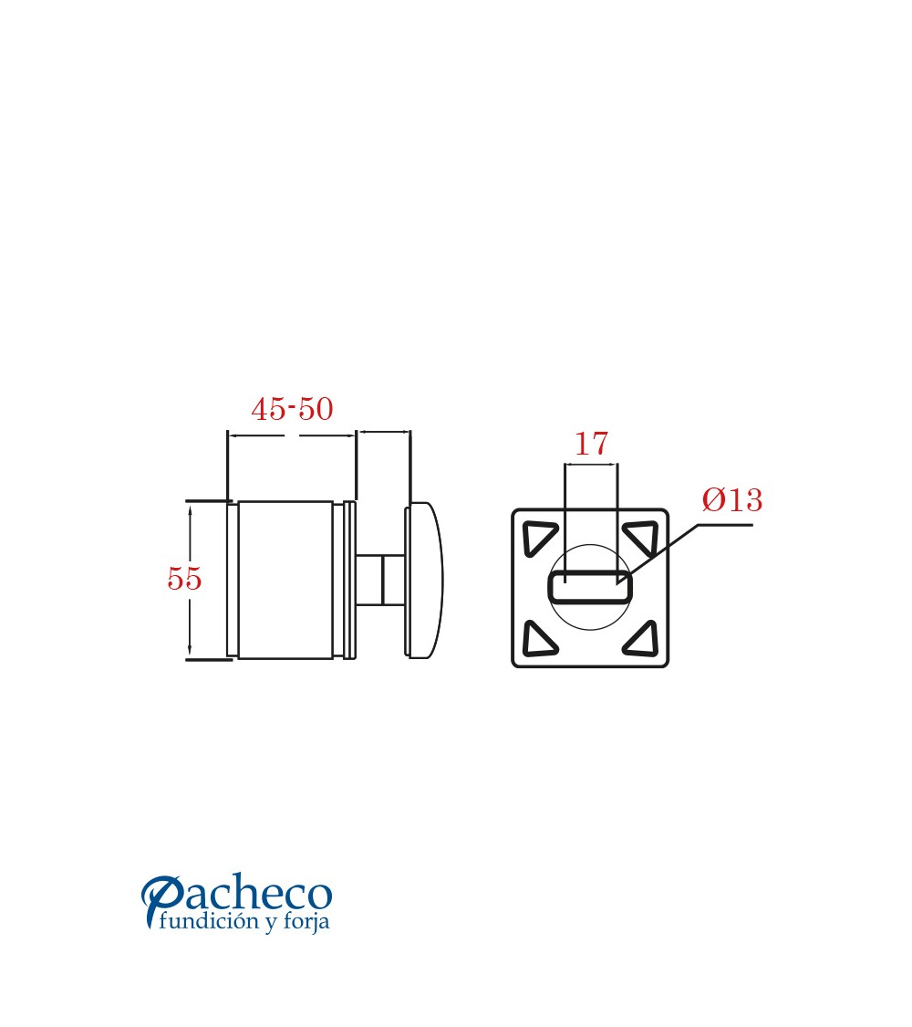 Pinza Inferior Acero Inoxidable 316 Brillo y Satinado con Tapa para Cuadrado