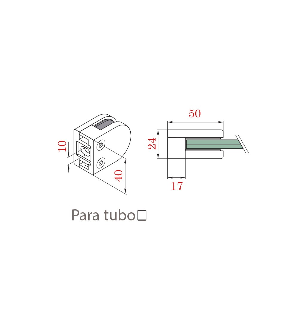 Ref.13100: Accesorios en acero inoxidable para barandillas o pasamanos para tubo cuadrado adaptable para cristal de 6 mm y 8 mm.