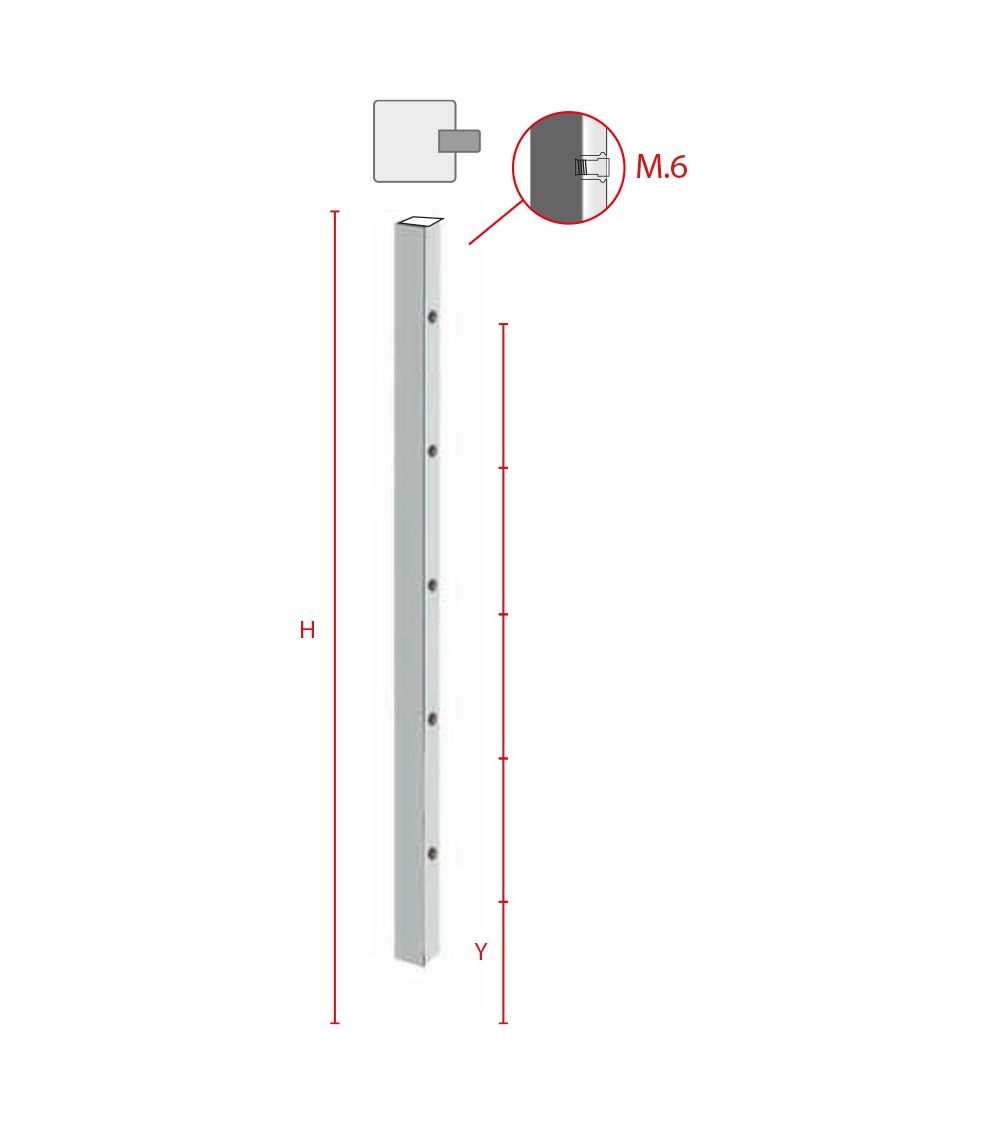 Poste Cuadrado 40 mm de Acero Inoxidable 316 Brillo y Satinado con Rosa Métrica M6 Lateral