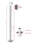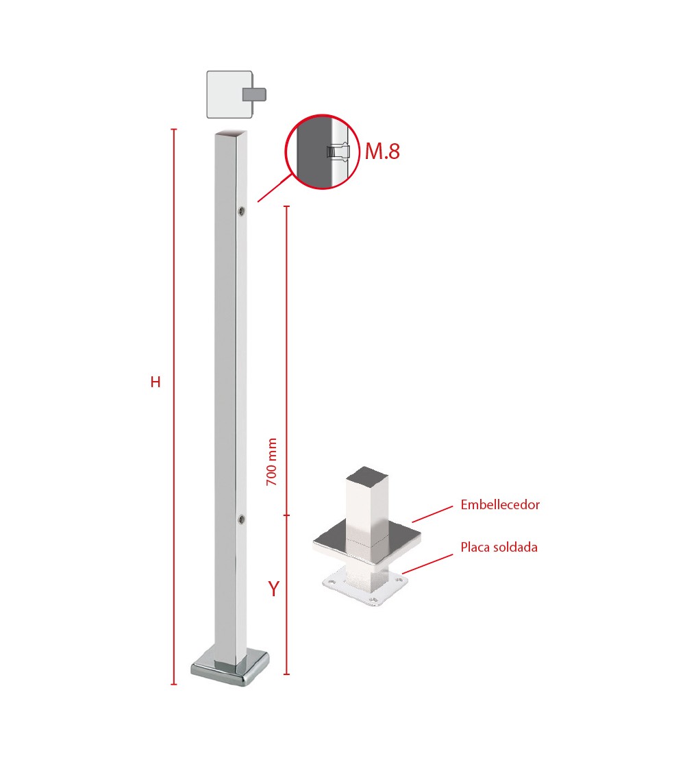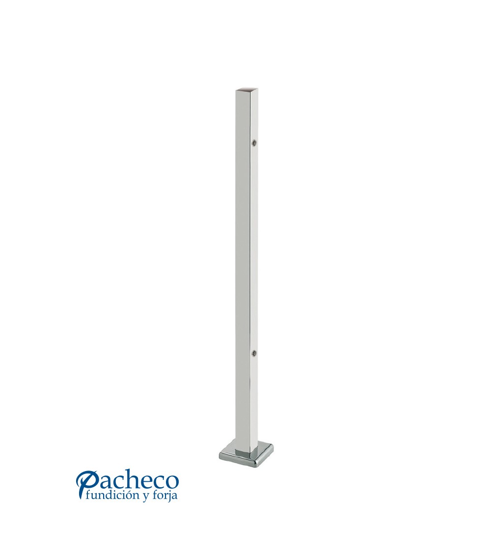 Poste Cuadrado 40 mm de Acero Inoxidable 316 Brillo y Satinado con Rosa Métrica M8 Lateral y Anclaje en la Base