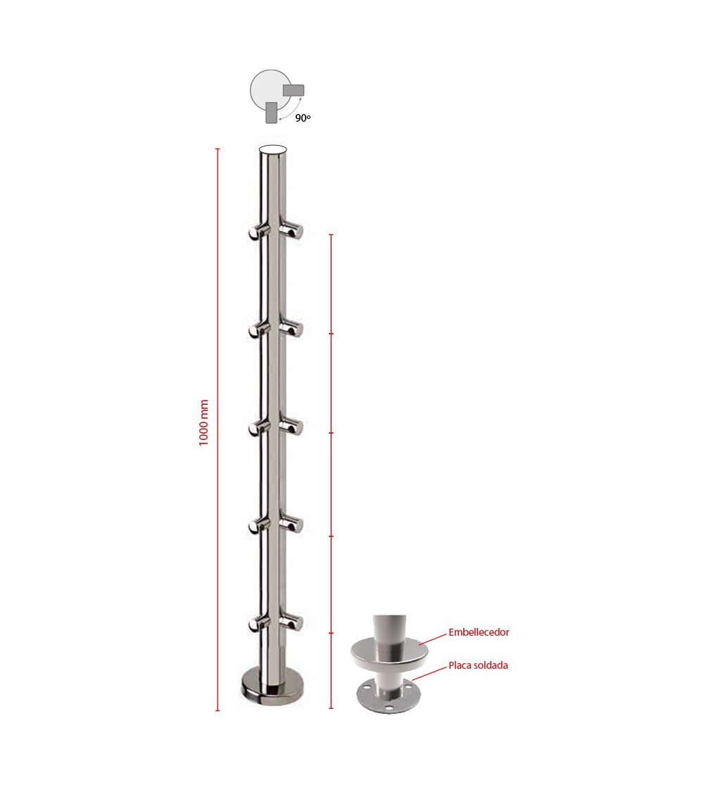 Poste Redondo 43 mm de Acero Inoxidable 316 Brillo y Satinado con Conectores a 90º