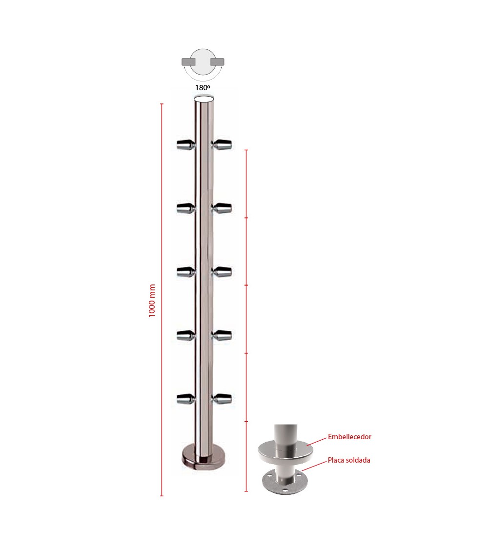 Poste Redondo 43 mm de Acero Inoxidable 316 Brillo y Satinado con Conectores Redondos a 180º