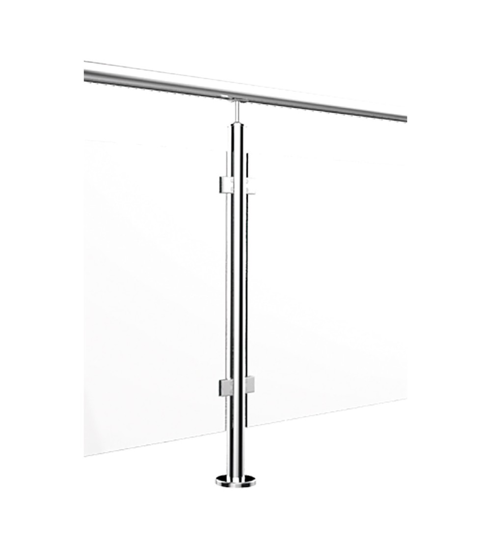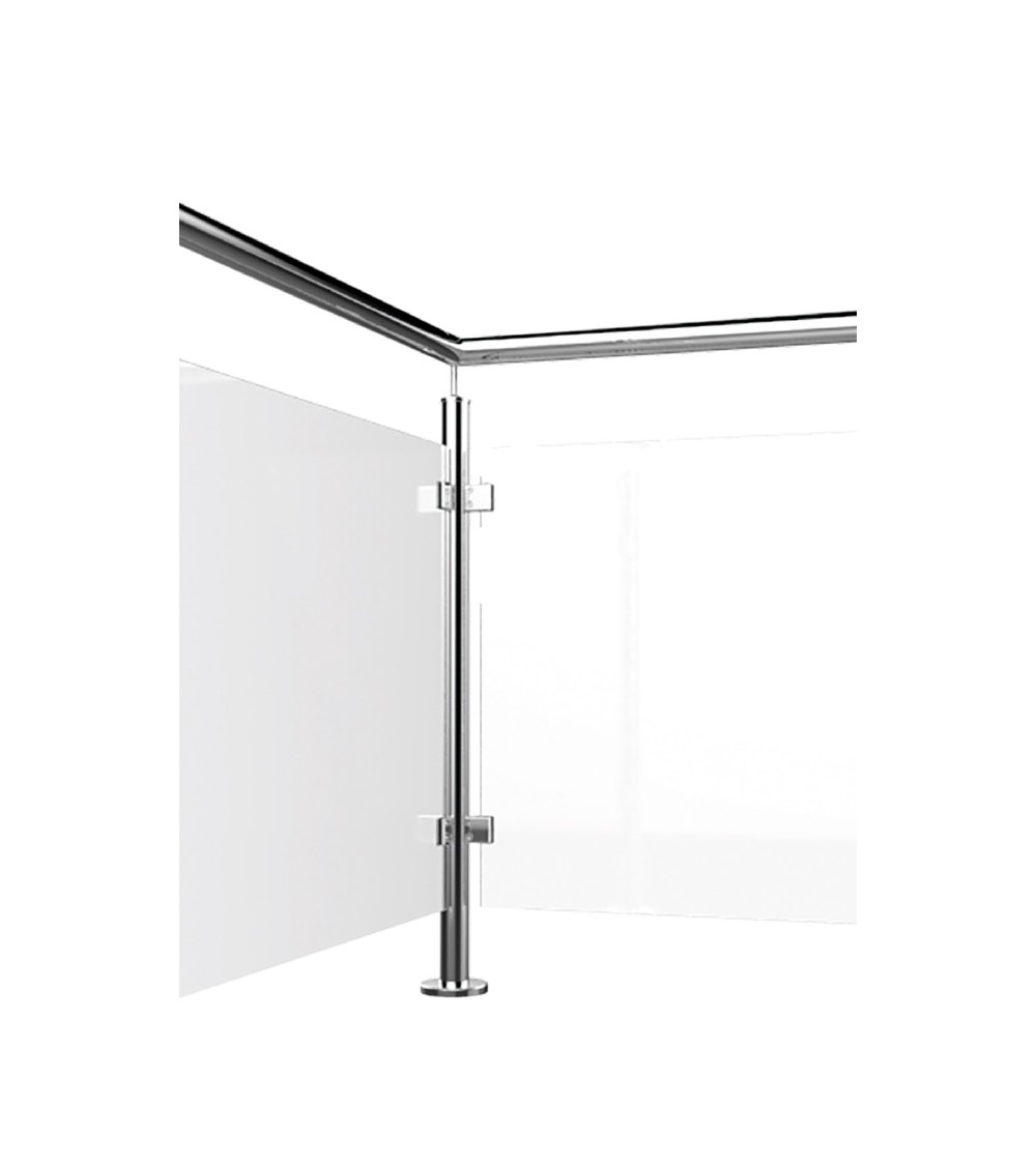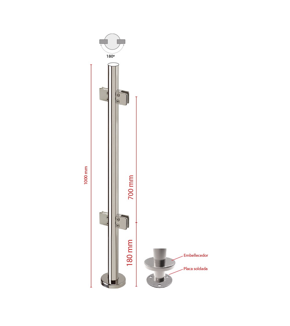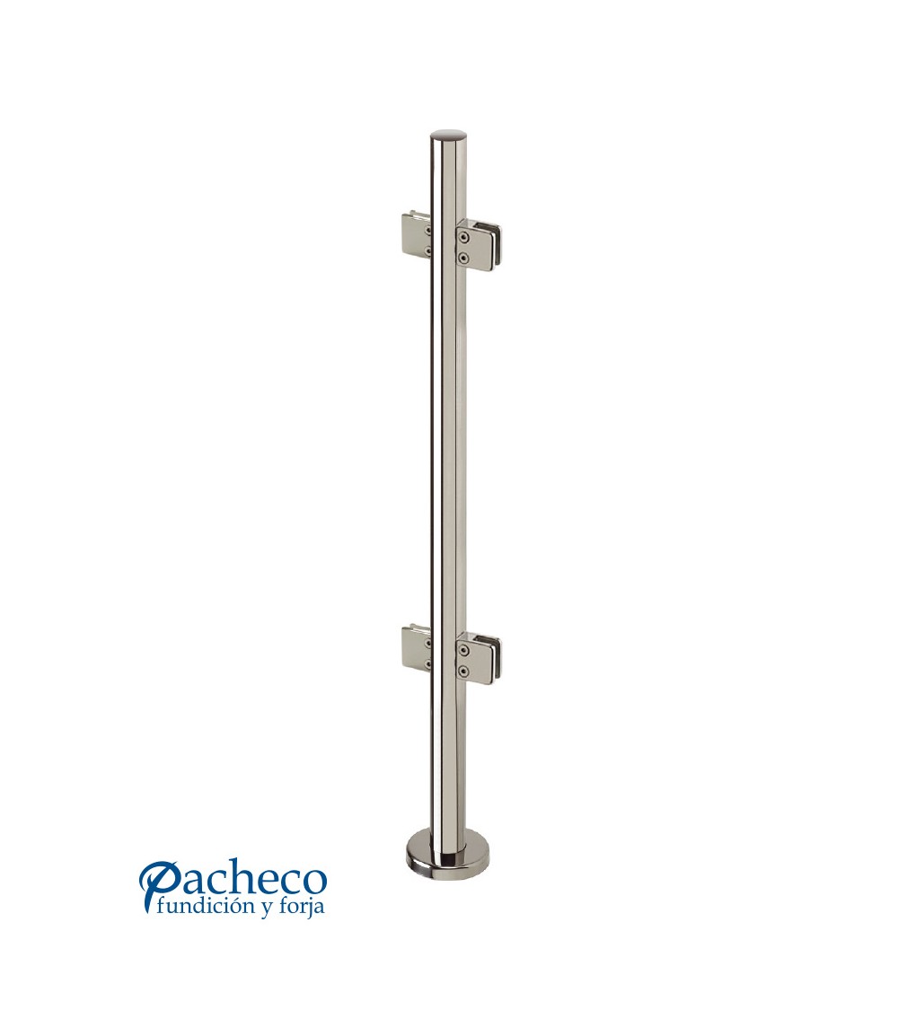 Poste Redondo 43 mm de Acero Inoxidable 316 Brillo y Satinado con Pinzas Cuadradas para Cristal a 180º