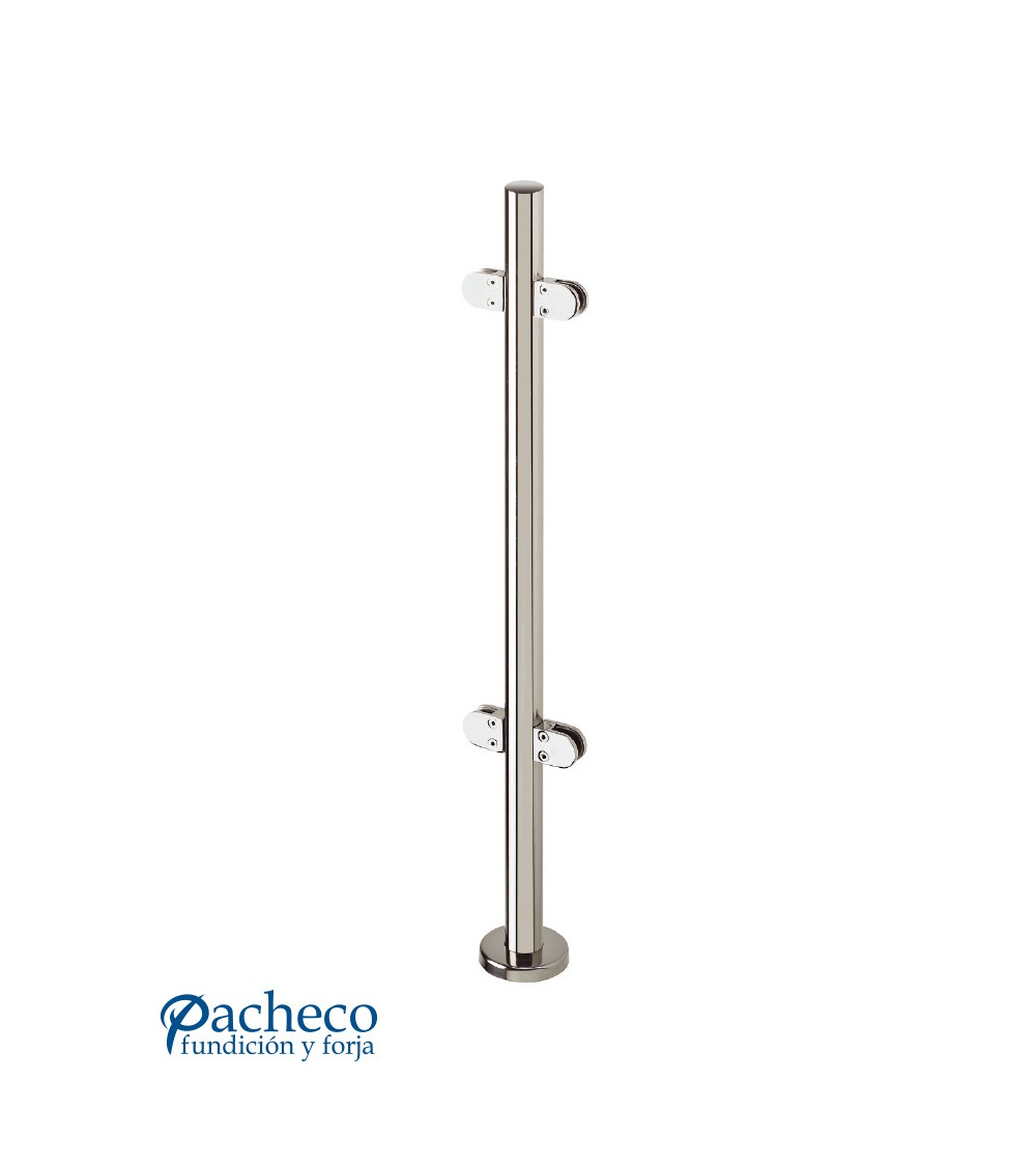 Poste Redondo 43 mm de Acero Inoxidable 316 Brillo y Satinado con Pinzas Redondas para Cristal a 180º