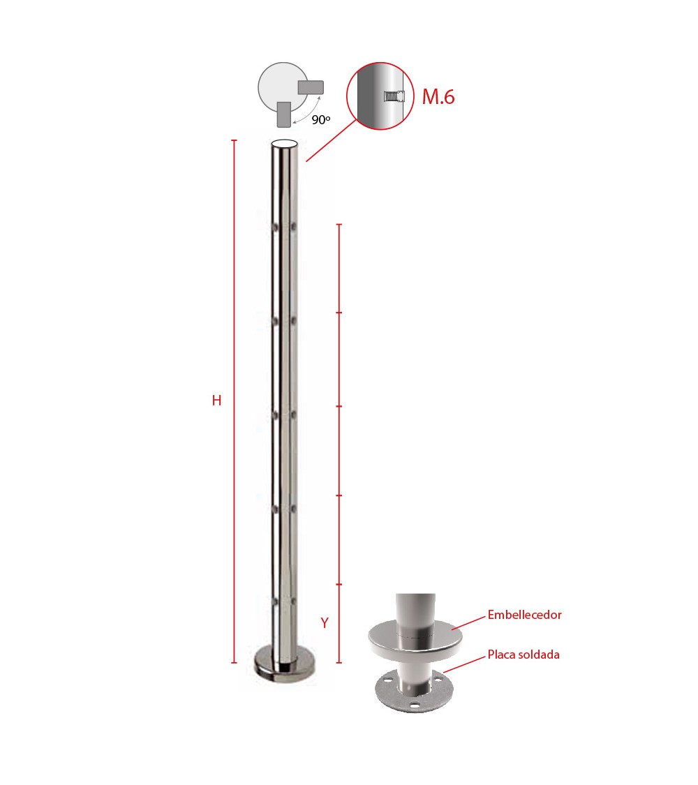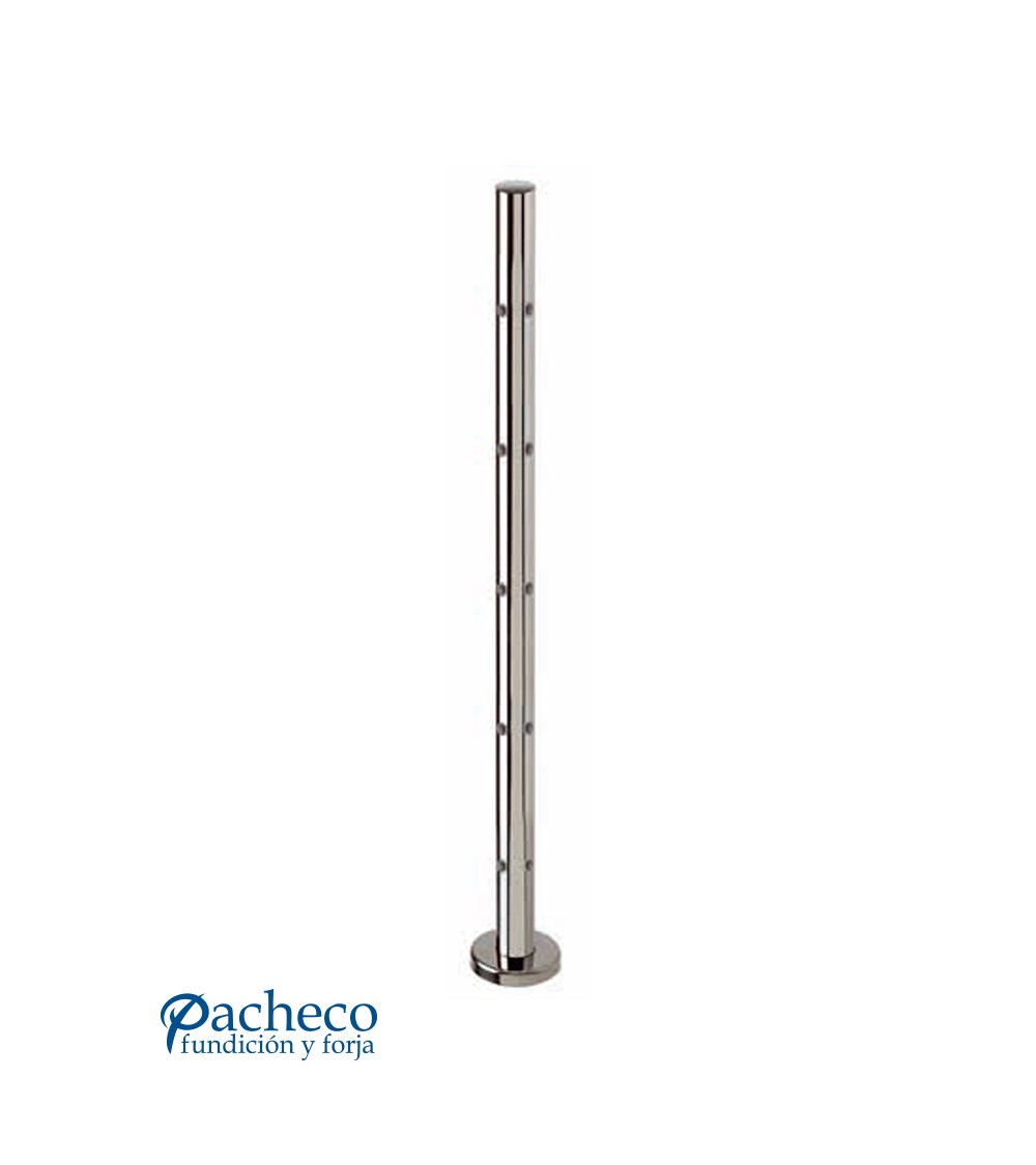 Poste Redondo 43 mm de Acero Inoxidable 316 Brillo y Satinado con Rosa Métrica M6 a 90º y Anclaje en la Base