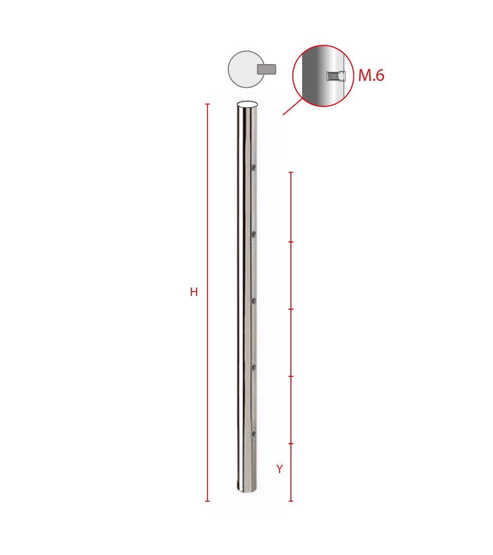 Poste Redondo 43 mm de Acero Inoxidable 316 Brillo y Satinado con Rosa Métrica M6 Lateral