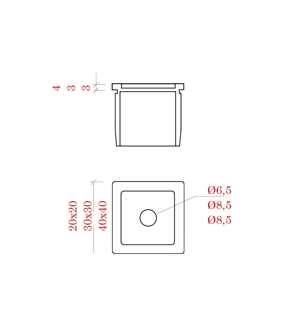 Casquillo Empotrable para Poste Cuadrado de Acero Inoxidable 316 Brillo y Satinado