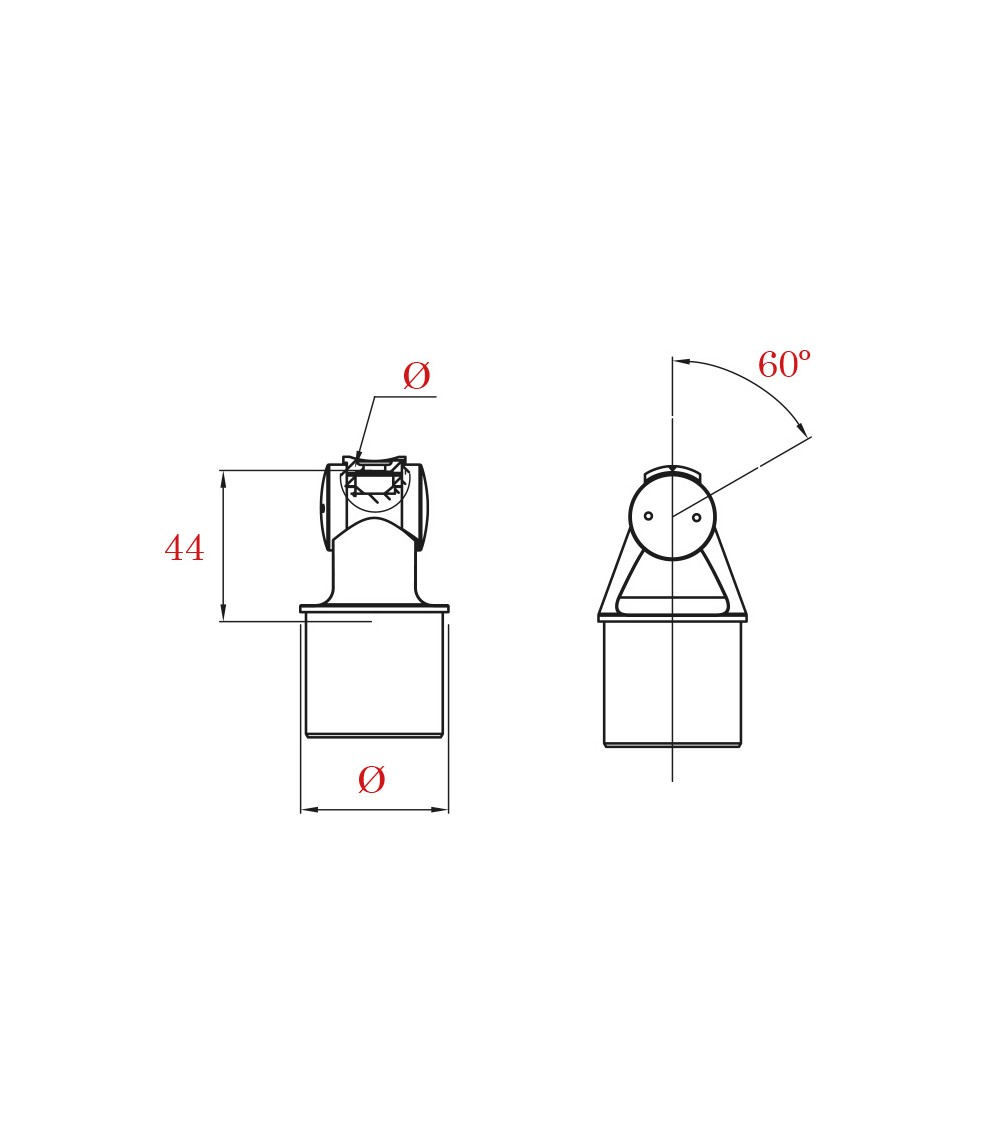 Ref.13029.55: Soporte pasamanos de acero inoxidable 316 BRILLO para pasamanos de tubo redondo de 43 mm de diámetro.