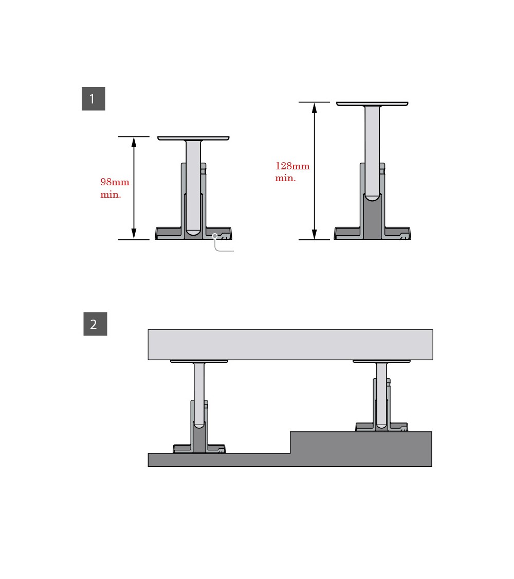 Ref.13054.88-ST: Soporte regulable pasamanos de acero inoxidable de 96 mm de alto.