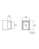 Ref.13199.12-ST: Soporte lateral de acero inoxidable para colocar tubo de acero inoxidable de pletina de 20 mm x 10 mm de lado.