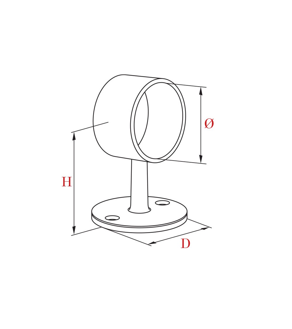 Ref.13044: Soporte pasamanos de acero inoxidable 316 ciego BRILLO para pasamanos de tubo redondo de 43 mm de diámetro.