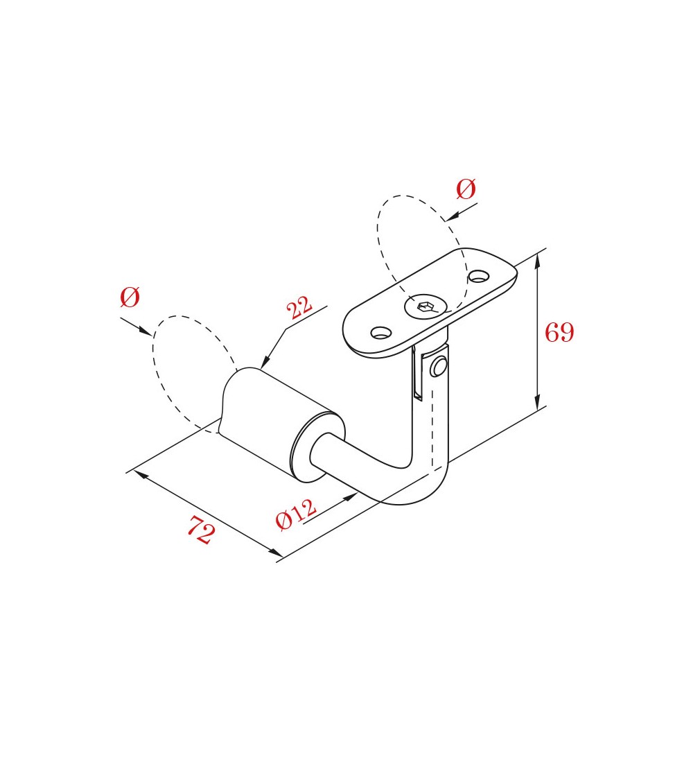 Soporte Curvo de Acero Inoxidable 316 Brillo y Satinado Regulable para colocar Pasamanos en Horizontal y en Vertical