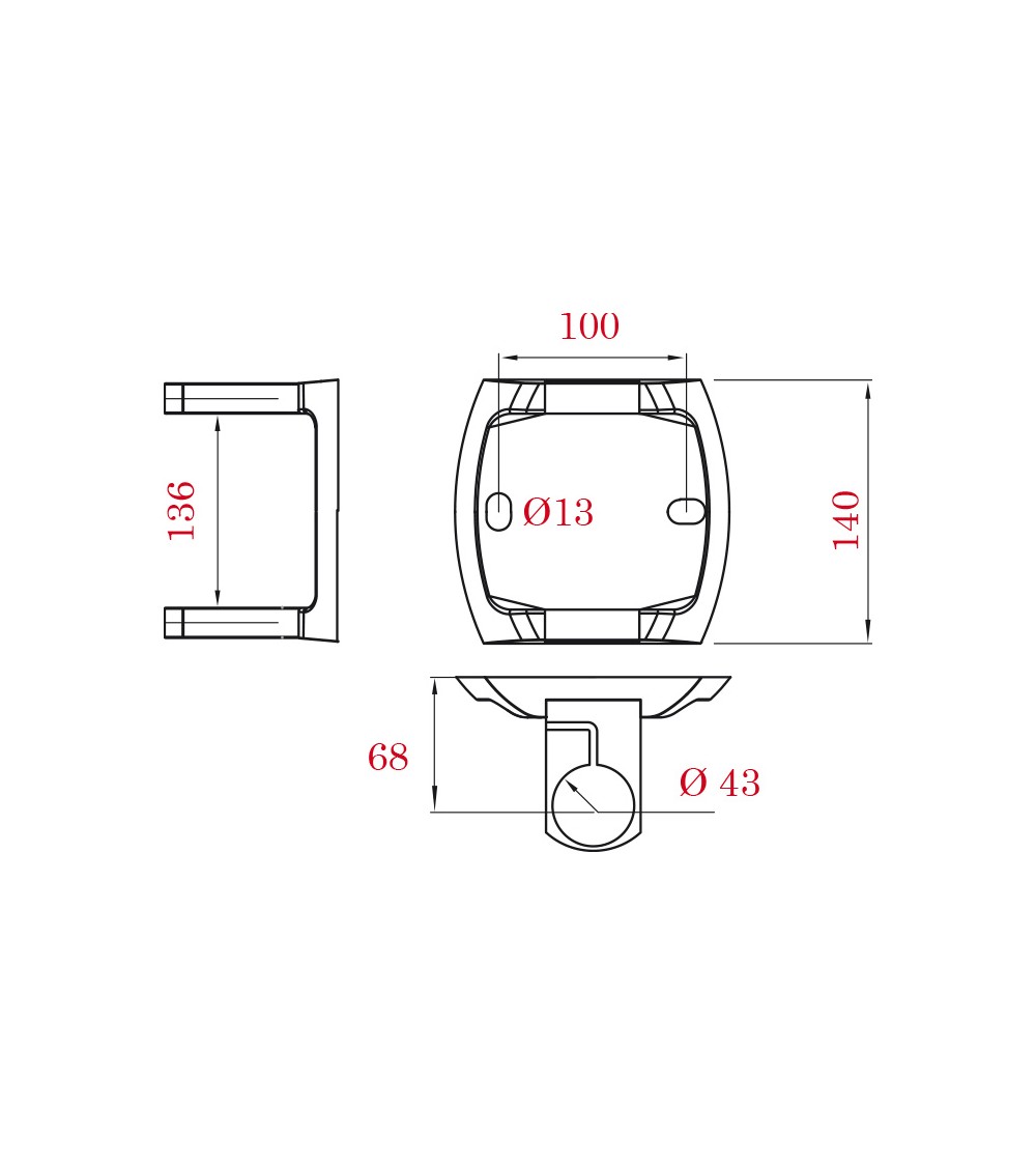 Ref.13098.05-ST: Soporte lateral de acero inoxidable para colocar tubos de 43 mm de diámetro.