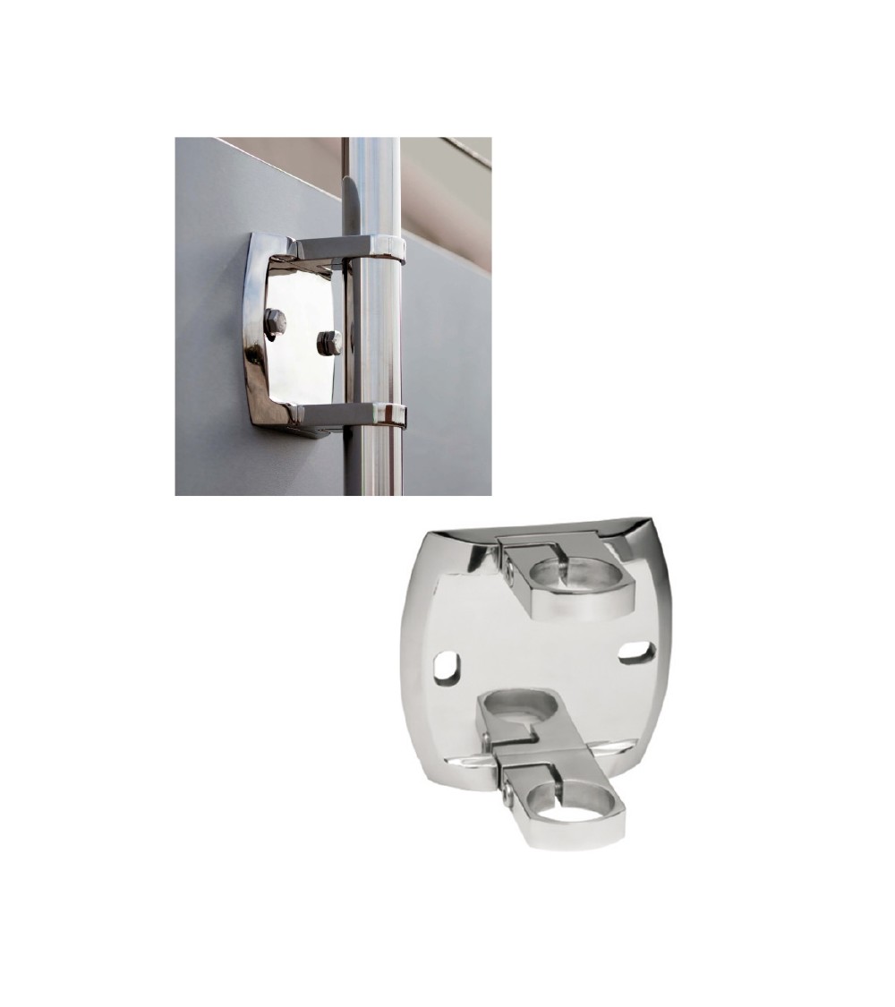 Soporte de Acero Inoxidable 316 Brillo y Satinado a Pared para Sujección Doble de Poste Redondo