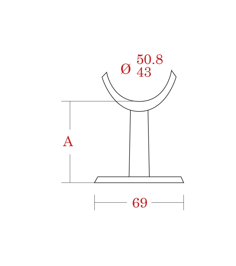 Ref.13036.09: Soporte pasamanos de acero inoxidable 316 BRILLO para pasamanos de tubo redondo de 43 mm de diámetro.