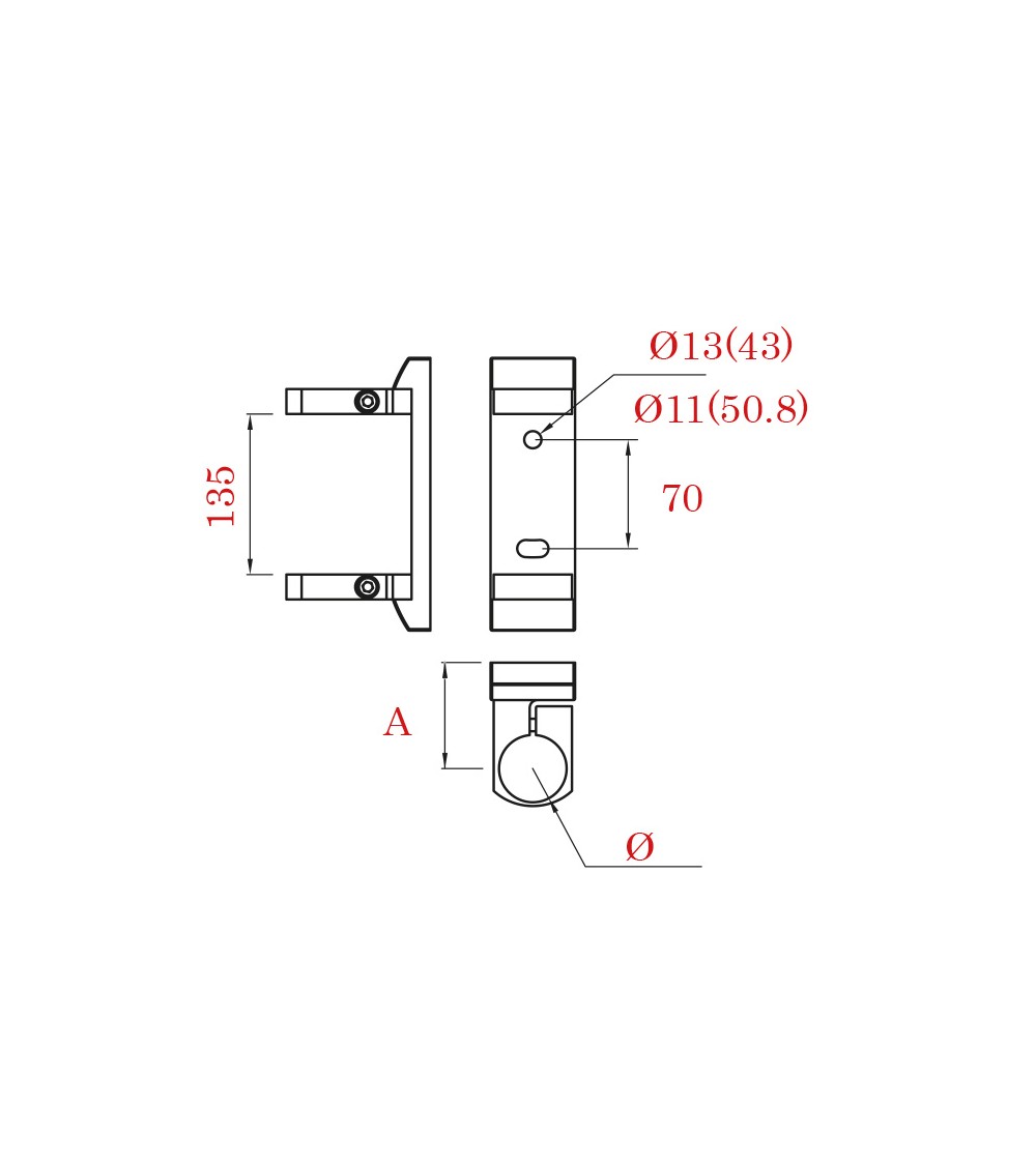 Ref.13098.12: Soporte lateral de acero inoxidable para colocar tubos de 43 mm de diámetro.