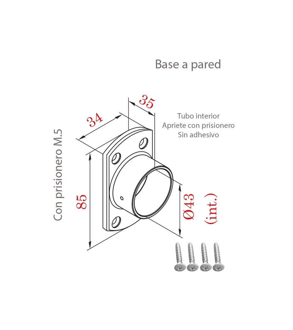 · Este accesorio en acero inoxidable de alta calidad se utiliza como base para los pasamanos o soporte de sujeción para la pared.