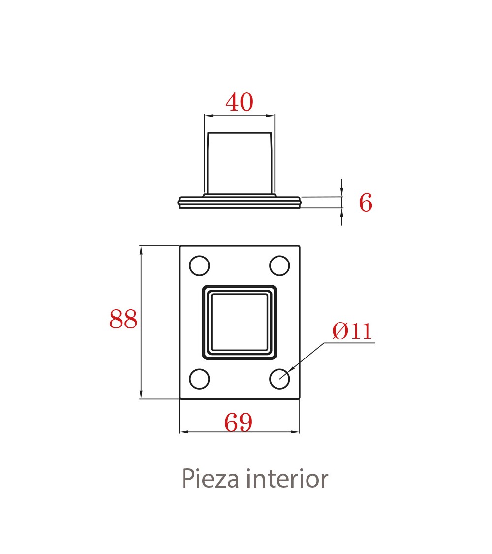 Base para Anclaje de Poste Cuadrado 40 mm de Acero Inoxidable 316