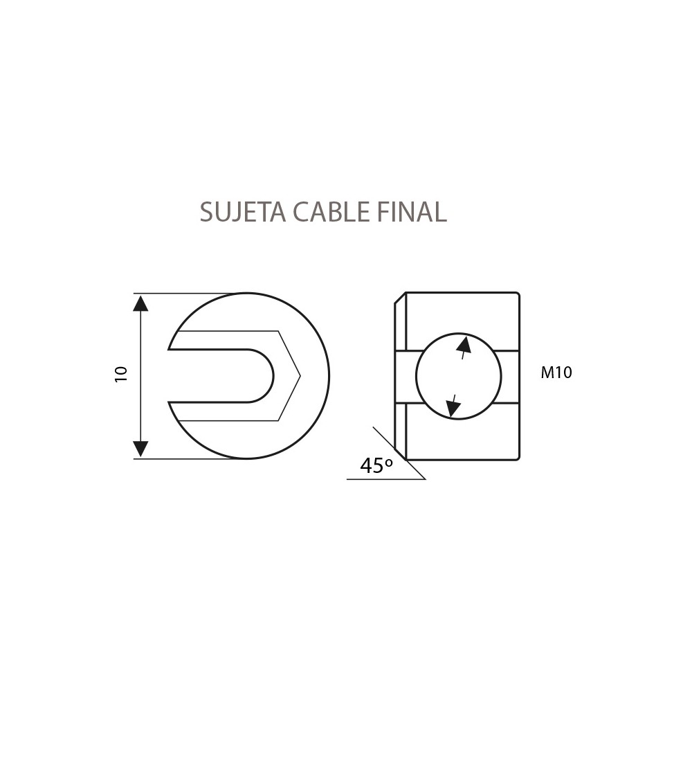 Sujetacable Final en Cruz de Acero Inoxidable para Remate de Cables 5 mm Diámetro