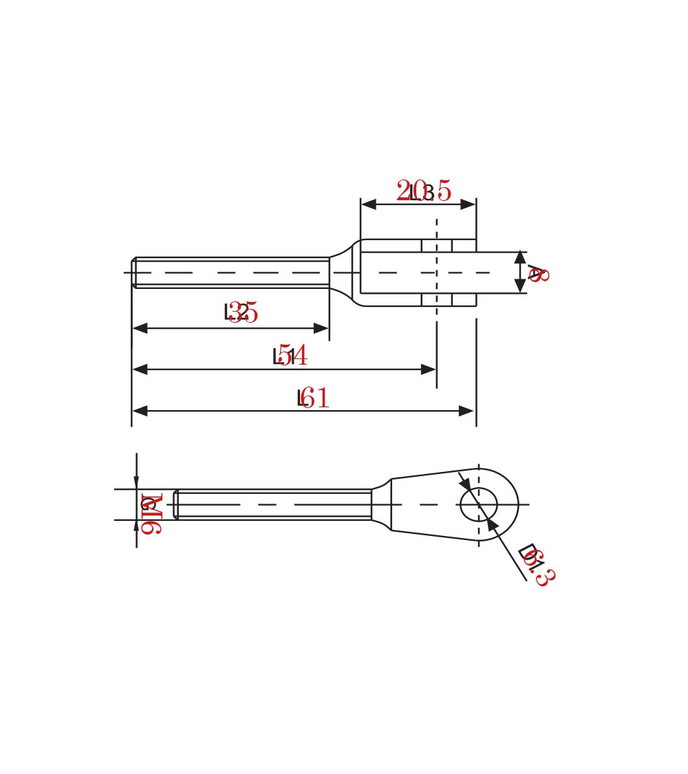 Terminal de Acero Inoxidable Roscado M6 Horquilla de Acero Inoxidable IZQ y DCHA