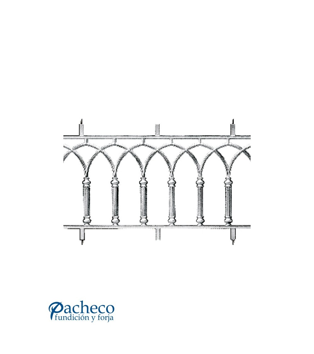 Balaustrada de aluminio fundido ornamental utilizado como adorno de forja. Fabricado con aluminio fundido con molde utilizada para la composición de rejas o vallas de hierro forjado con referencia 11062: