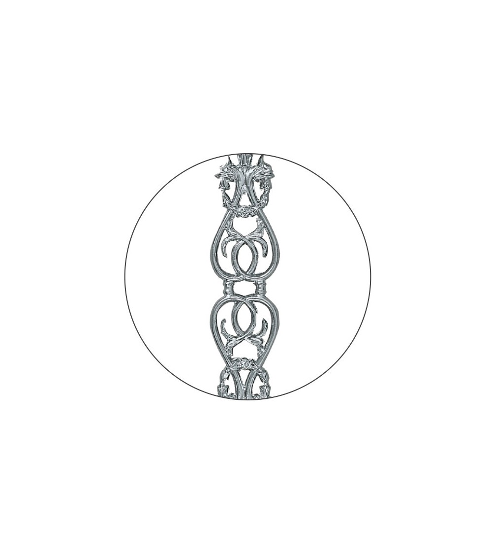 Balaustre de aluminio fundido ornamental utilizado como adorno de forja. Fabricado con aluminio con molde utilizado para la composición de rejas o vallas de hierro forjado con referencia 11006 y referencia 11007: