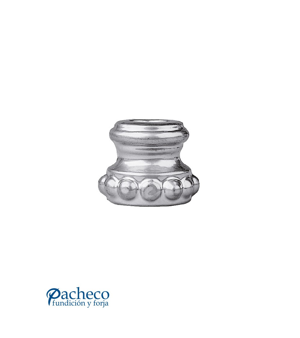 Base de aluminio fundido utilizado como forja decorativa fabricado con hierro fundido con molde para tubo redondo. Este accesorio en aluminio fundido se utiliza como adorno en puertas de forja, ventanas de forja o balcones de forja. Se combina con balaustres de hierro forjado, balaustres de hierro fundido o balaustres de aluminio fundido. La medida estándar es de 26 mm alto x 40 mm ancho. Piezas y accesorios de aluminio fundido a medida, también realizamos cualquier diseño de hierro fundido y forja decorativa. Consulta a nuestro equipo de diseño especializado. Aquí los límites del metal, los pones tú. Llámanos para informarte al 923 24 33 98 o escríbenos a info@pachecoforja.com