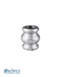 Macolla de aluminio fundido utilizado como forja decorativa fabricado con aluminio fundido con molde para tubo redondo. Este accesorio en aluminio fundido se utiliza como adorno en puertas de forja, ventanas de forja o balcones de forja. Se combina con balaustres de hierro forjado, balaustres de hierro fundido o balaustre de aluminio fundido. La medida estándar es de 42 mm alto x 35 mm ancho. Piezas y accesorios de hierro fundido a medida, también realizamos cualquier diseño de hierro fundido y forja decorativa. Consulta a nuestro equipo de diseño especializado. Aquí los límites del metal, los pones tú. Llámanos para informarte al 923 24 33 98 o escríbenos a info@pachecoforja.com