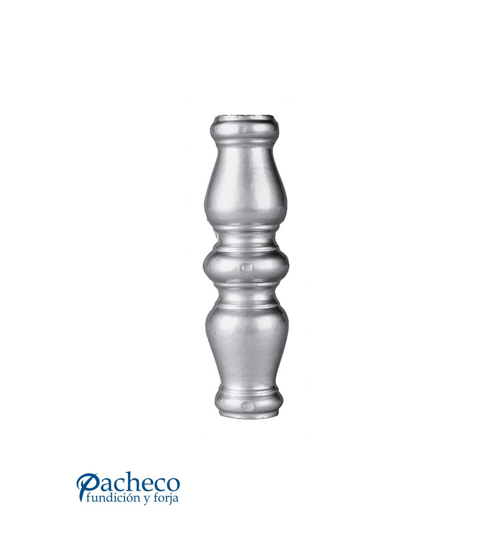 Macolla de aluminio fundido utilizado como forja decorativa fabricado con aluminio fundido con molde para tubo redondo. Este accesorio en aluminio fundido se utiliza como adorno en puertas de forja, ventanas de forja o balcones de forja. Se combina con balaustres de hierro forjado, balaustres de hierro fundido o balaustre de aluminio fundido. La medida estándar es de 135 mm alto x 45 mm ancho. Piezas y accesorios de hierro fundido a medida, también realizamos cualquier diseño de hierro fundido y forja decorativa. Consulta a nuestro equipo de diseño especializado. Aquí los límites del metal, los pones tú. Llámanos para informarte al 923 24 33 98 o escríbenos a info@pachecoforja.com