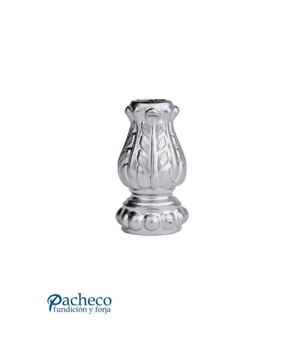 Base de aluminio fundido utilizado como forja decorativa fabricado con hierro fundido con molde para tubo redondo. Este accesorio en aluminio fundido se utiliza como adorno en puertas de forja, ventanas de forja o balcones de forja. Se combina con balaustres de hierro forjado, balaustres de hierro fundido o balaustres de aluminio fundido. La medida estándar es de 75 mm alto x 45 mm ancho o 85 mm alto x 45 mm ancho. Piezas y accesorios de aluminio fundido a medida, también realizamos cualquier diseño de hierro fundido y forja decorativa. Consulta a nuestro equipo de diseño especializado. Aquí los límites del metal, los pones tú. Llámanos para informarte al 923 24 33 98 o escríbenos a info@pachecoforja.com