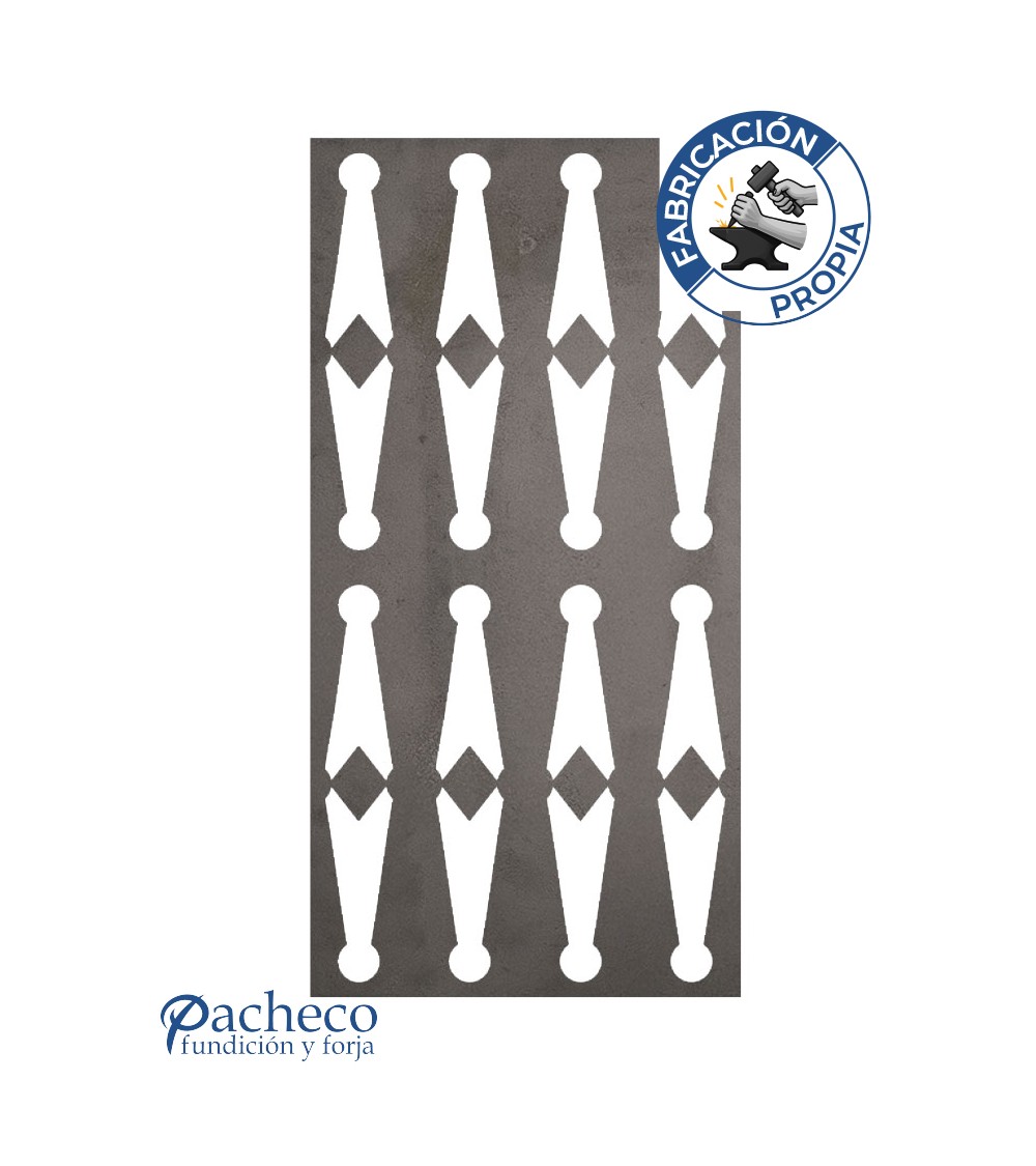 · Celosía de hierro decorativa Sena fabricada por corte láser en chapa de acero de carbono (hierro).