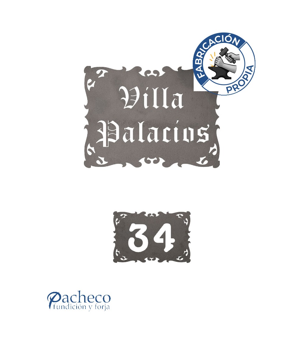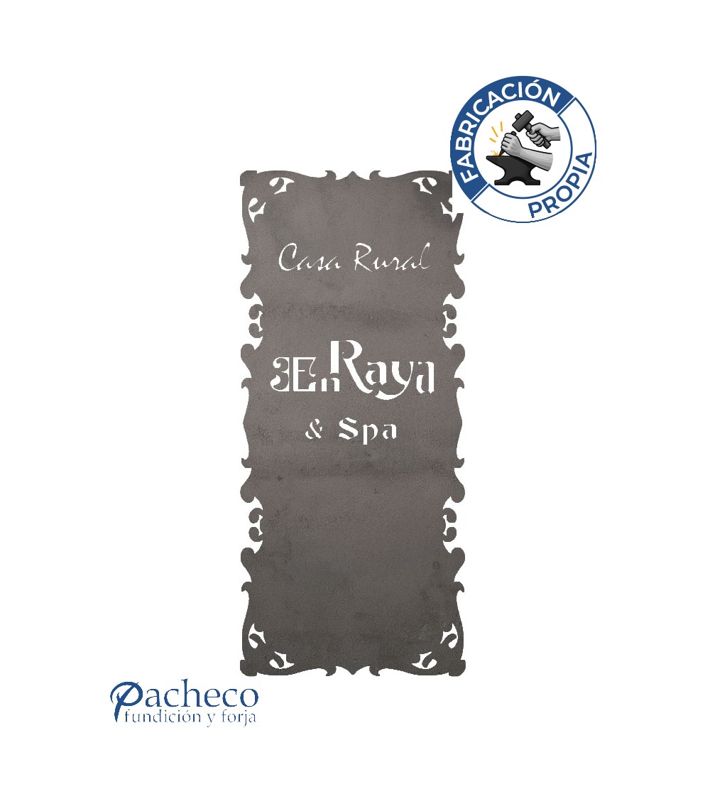 Placa de hierro contorno ornamental calada para señalética personalizada