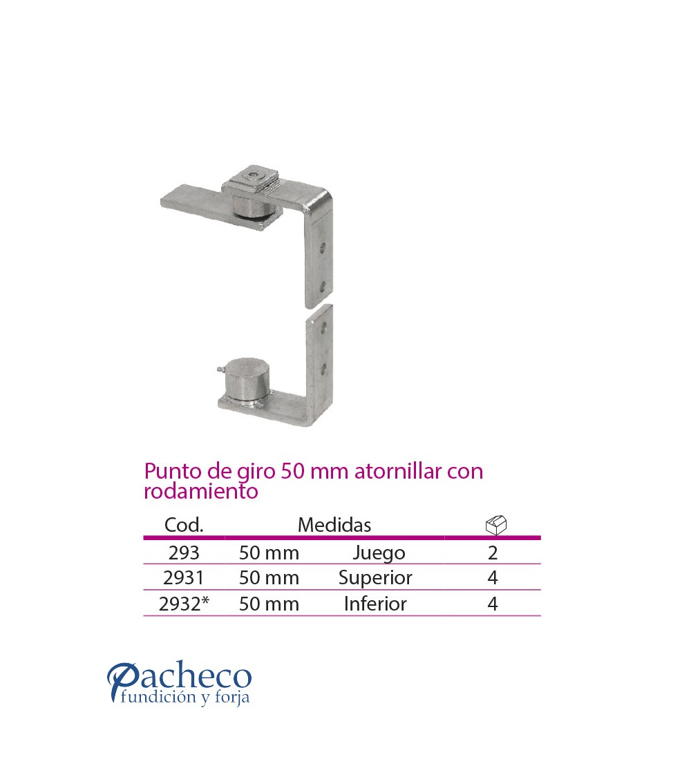 Punto de giro 50mm atornillar con rodamiento para puerta de cancela