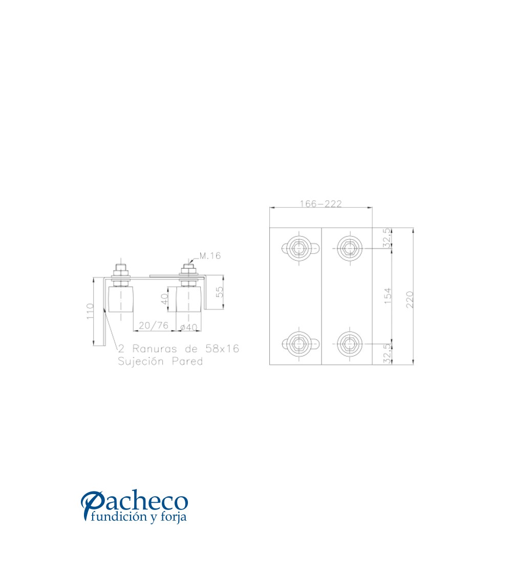 Cajas de poleas guía regulable a pared para puerta autoportante
