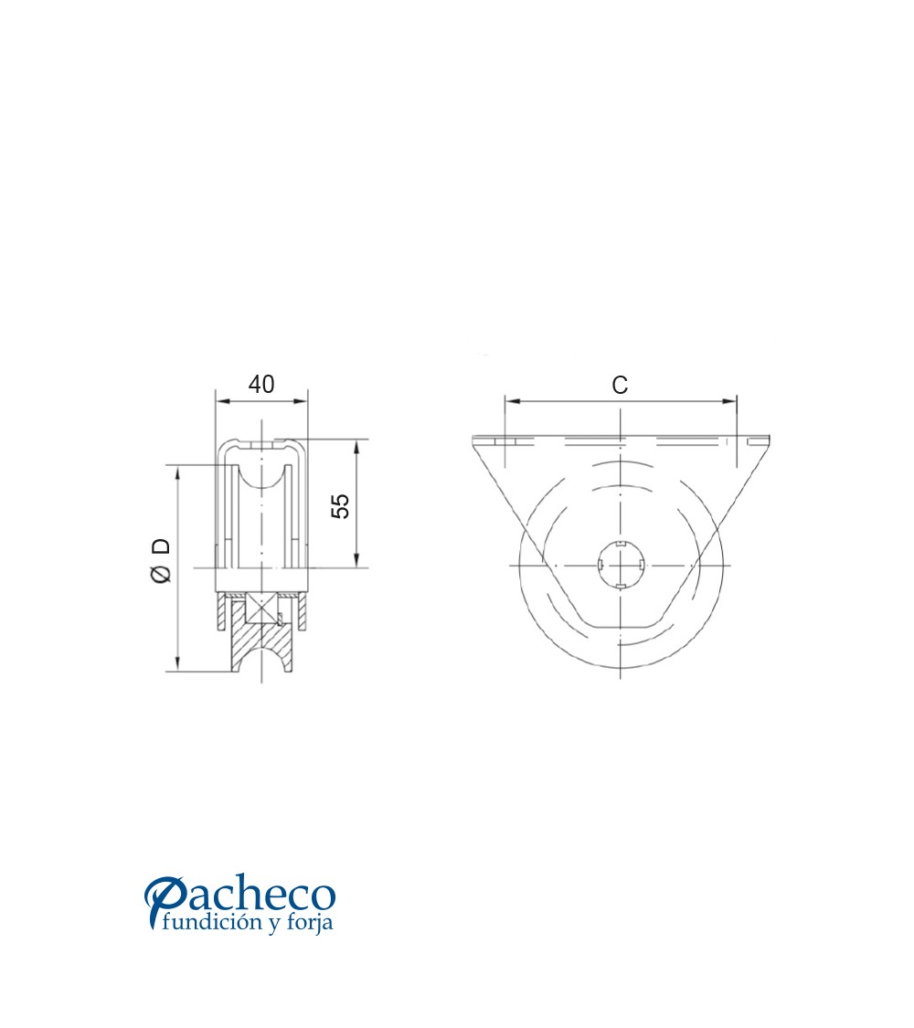 Polea Canal "U" 20 mm con caja para puerta corredera