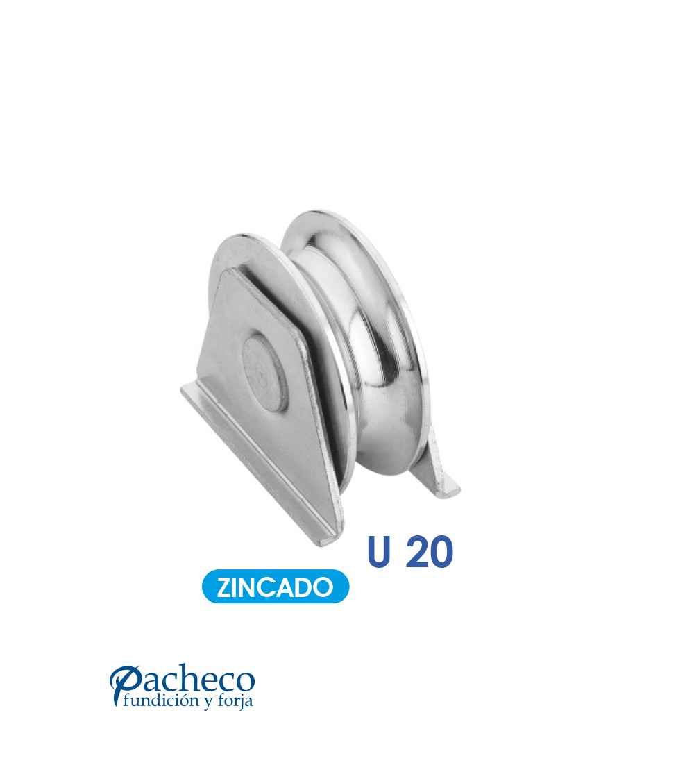 Polea canal "U" 20 mm con soporte para puerta corredera