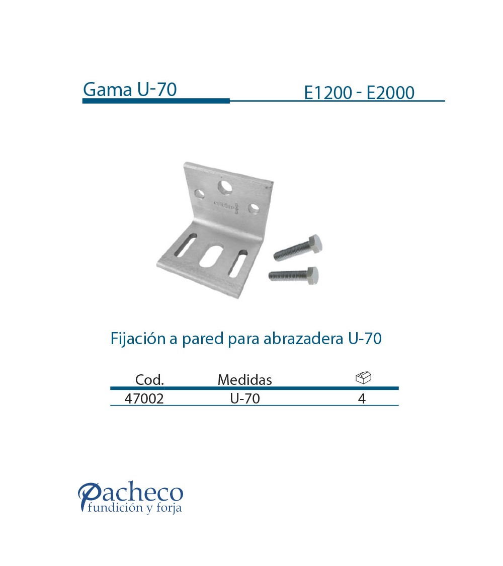 Fijación a pared para abrazadera U-70 para puerta corredera colgada