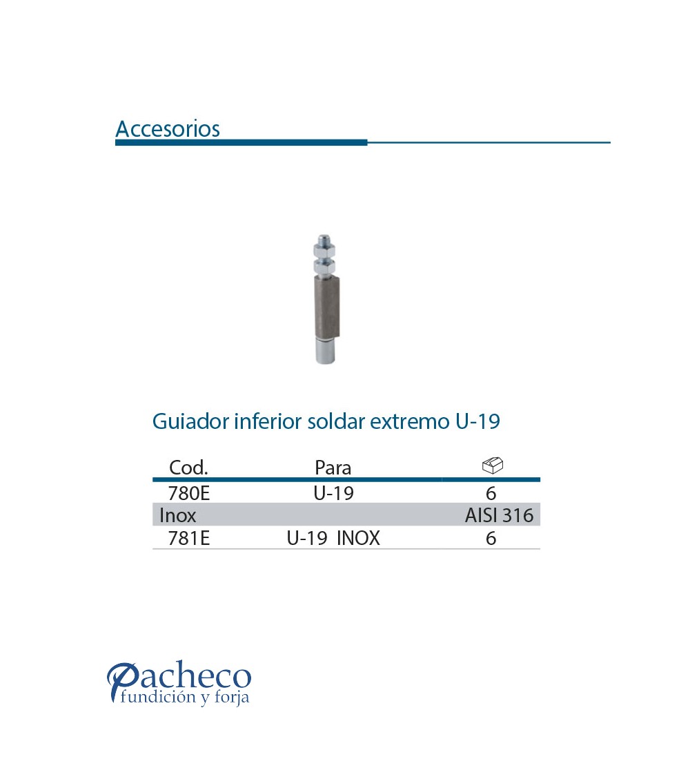 Guiador inferior soldar central U-19 para puerta corredera colgada