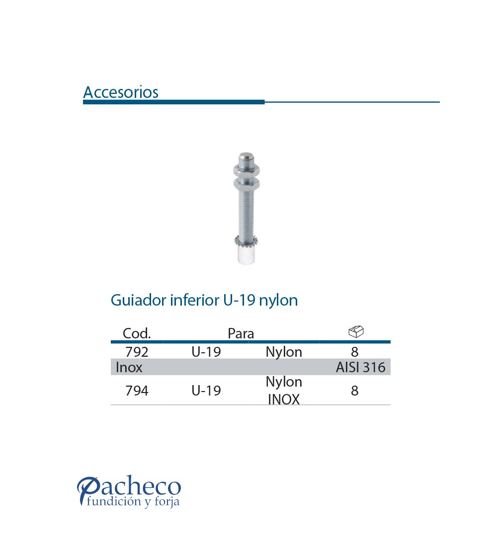 Guiador inferior U-19 nylon para puerta corredera colgada