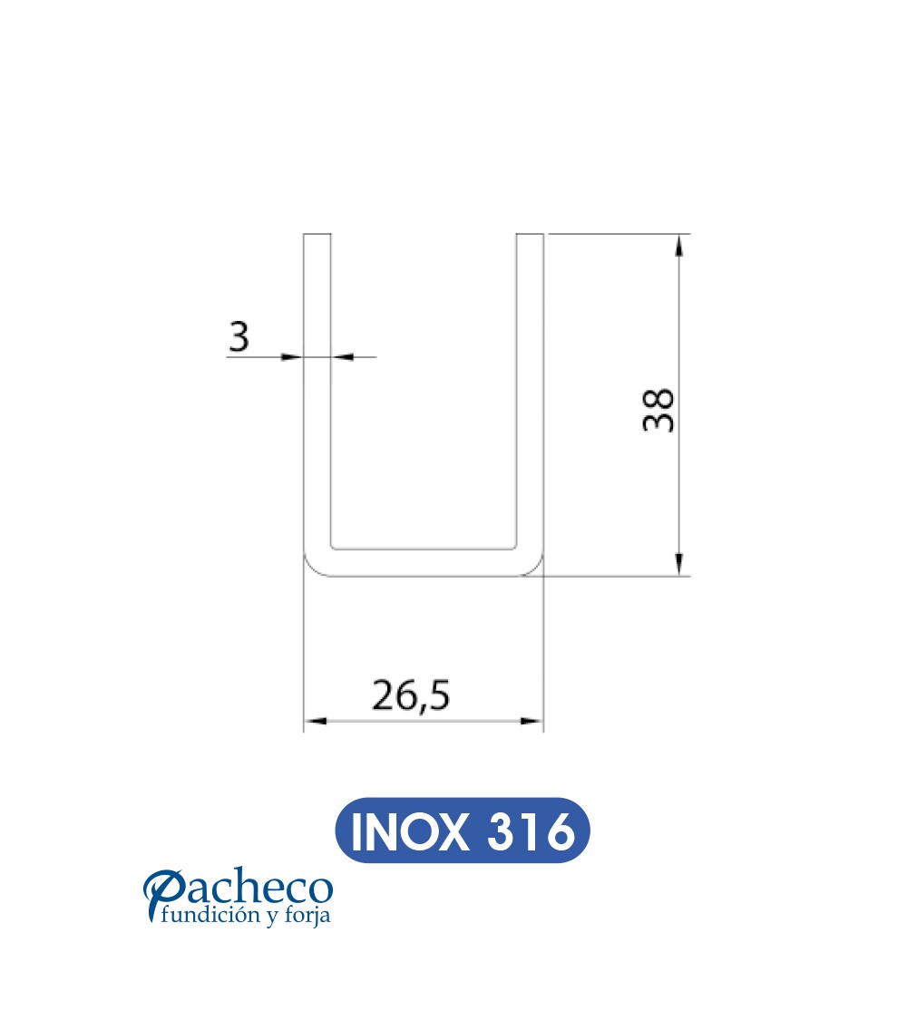Raíl inferior U-19 para puerta corredera colgada