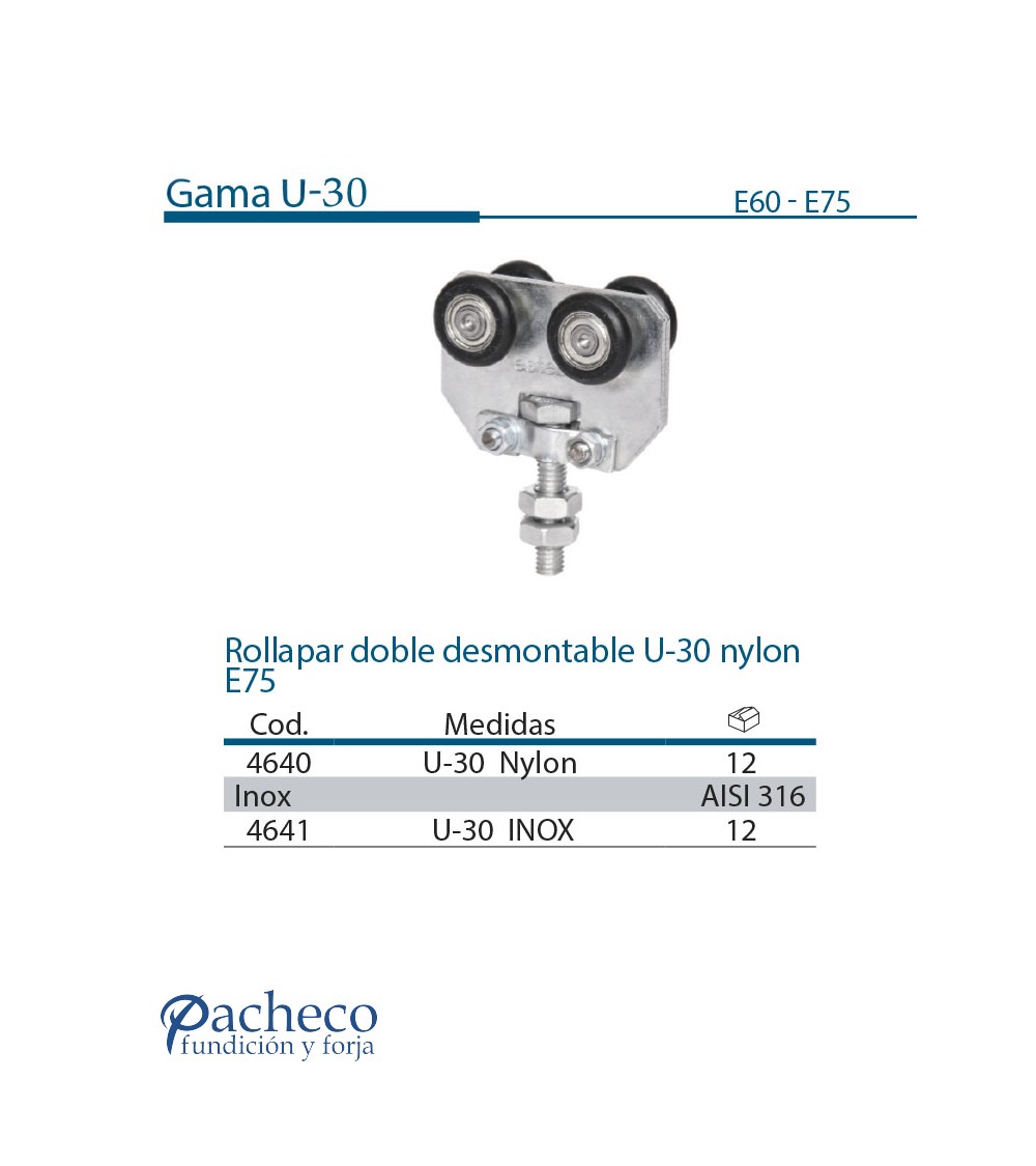 Rollapar doble desmontable U-30 de nylon E75 para puerta corredera colgada