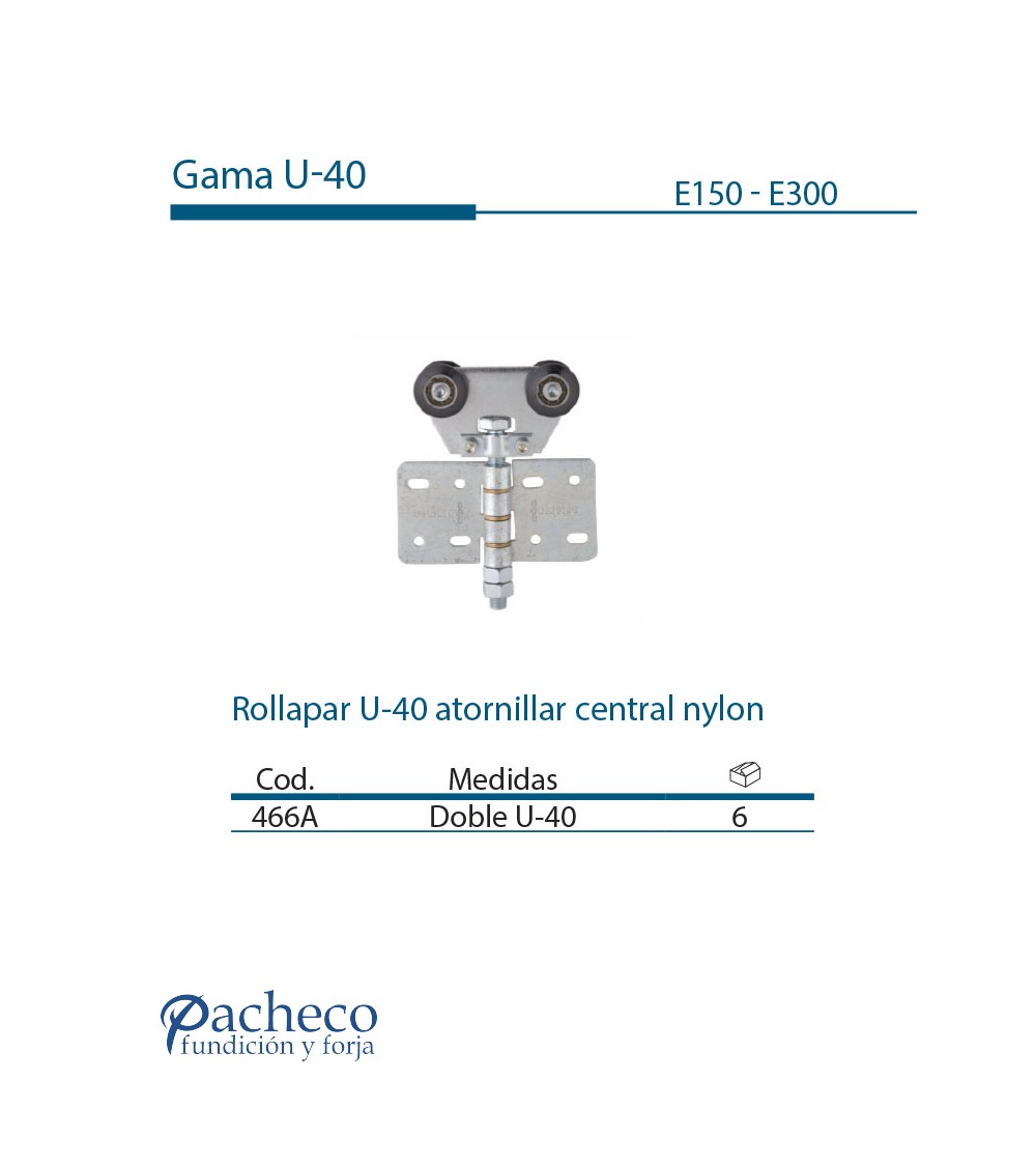 Rollapar U-40 atornillar central de nylon para puerta corredera colgada