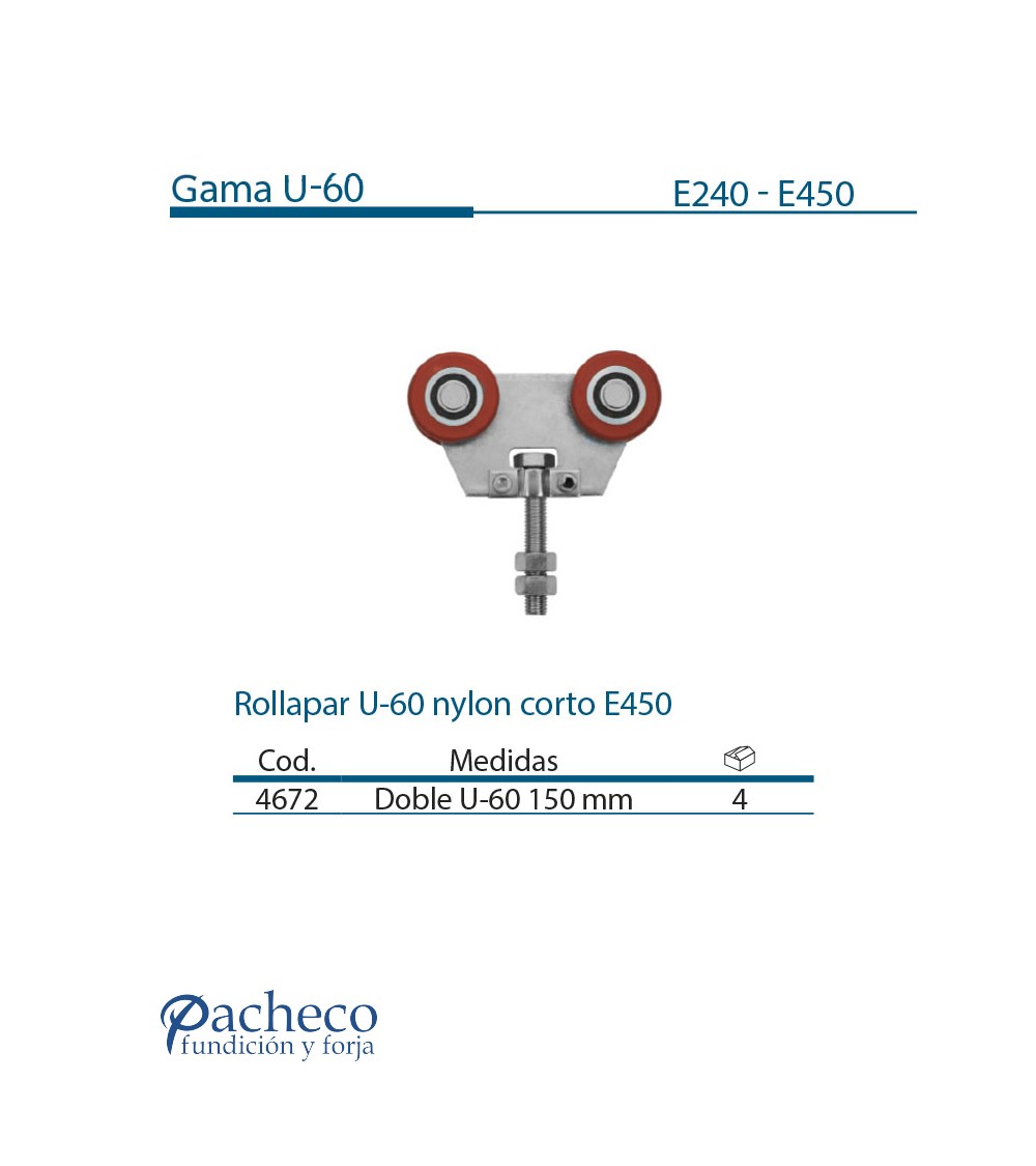 Rollapar U-60 de nylon corto E450 para puerta corredera colgada