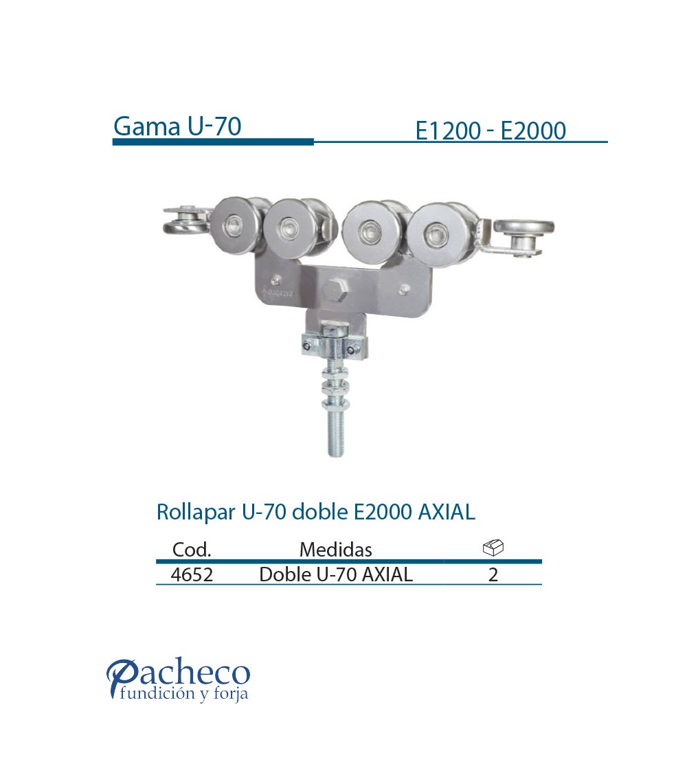 Rollapar U-70 doble E2000 AXIAL para puerta corredera colgada