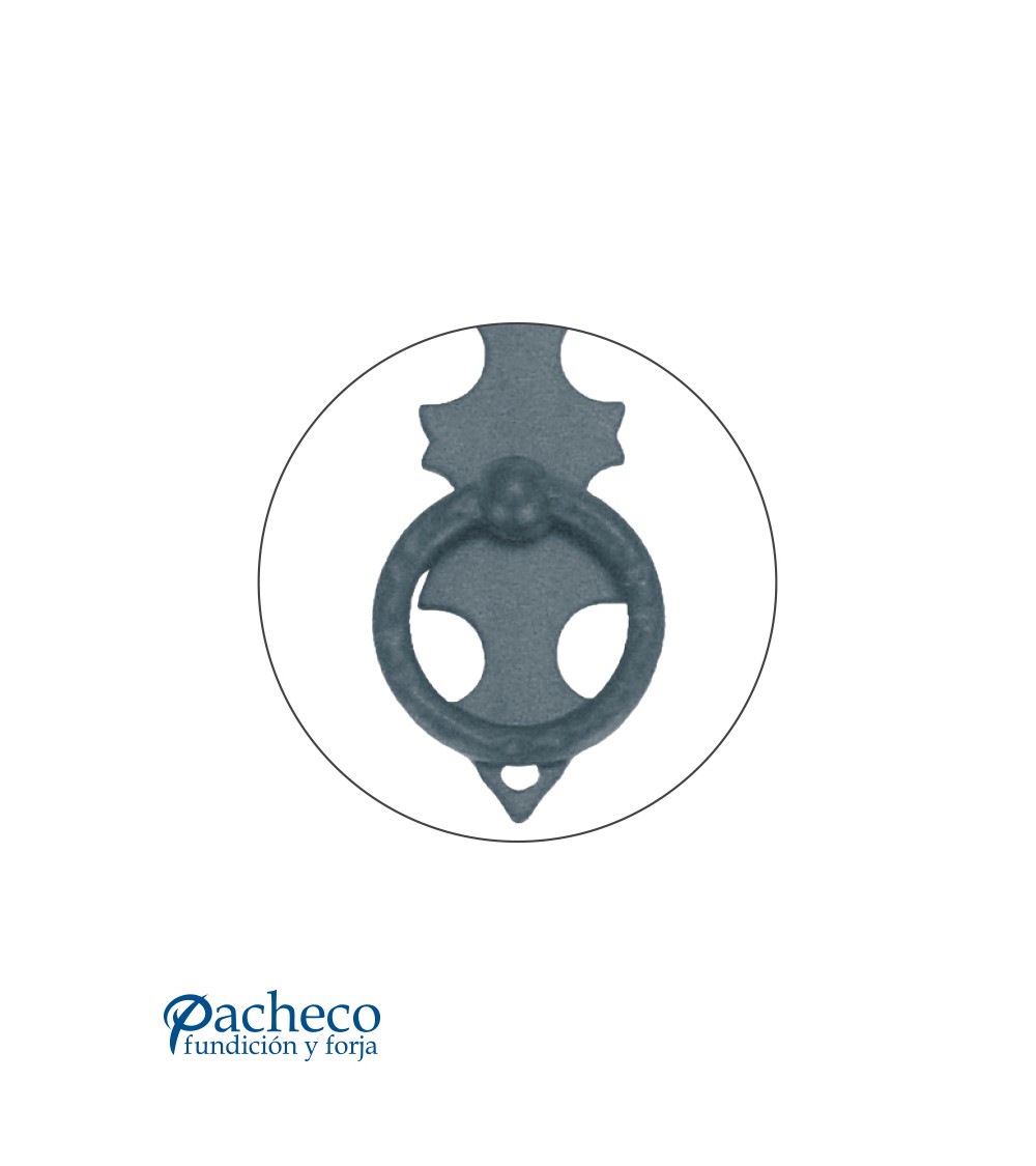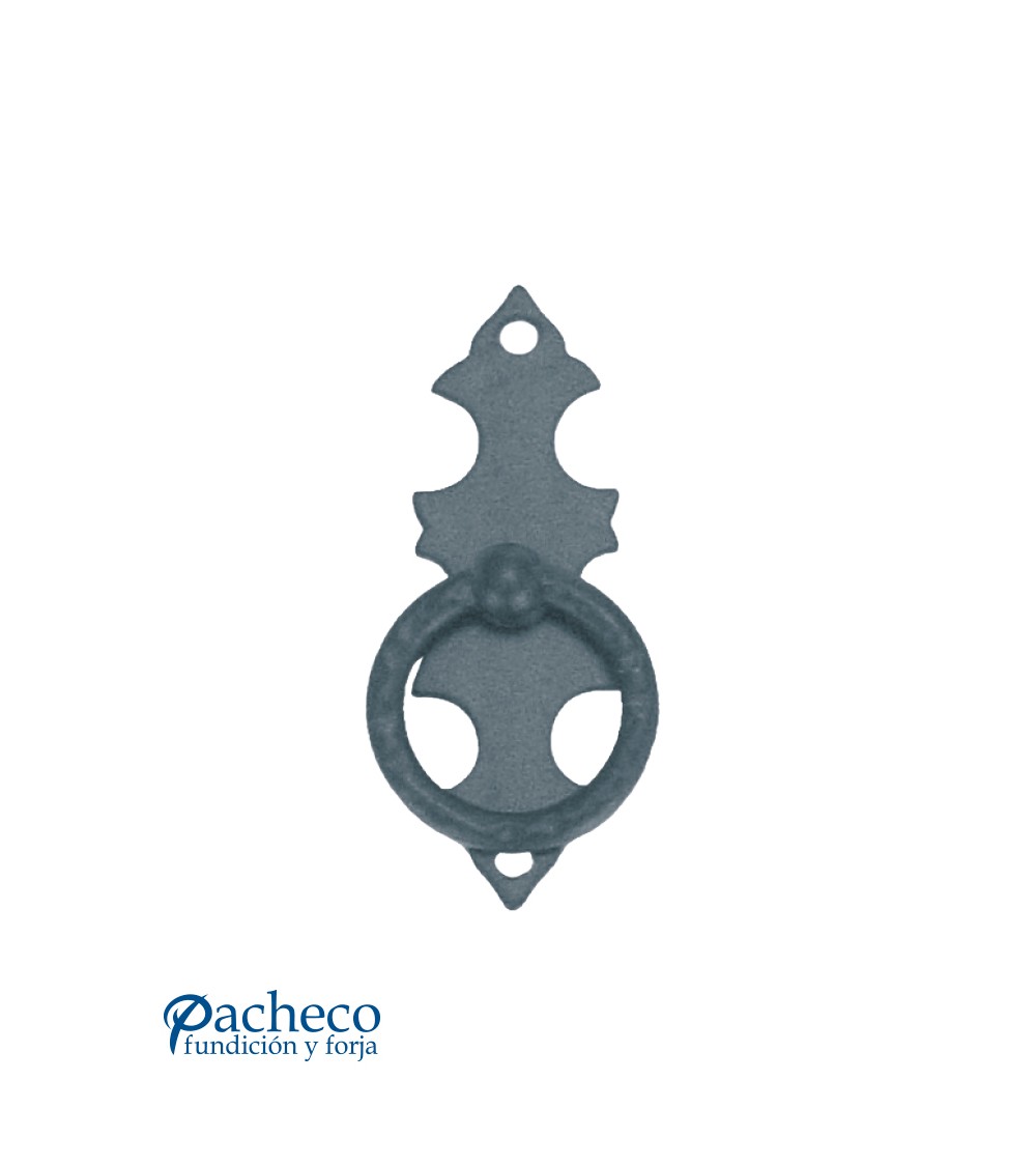 Llamador de hierro forjado en anilla con placa rústica para puerta de portal