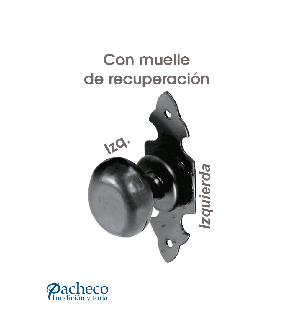 Pomo de forja rústica con placa y muelle de recuperación para puerta de hierro (izquierda / derecha)